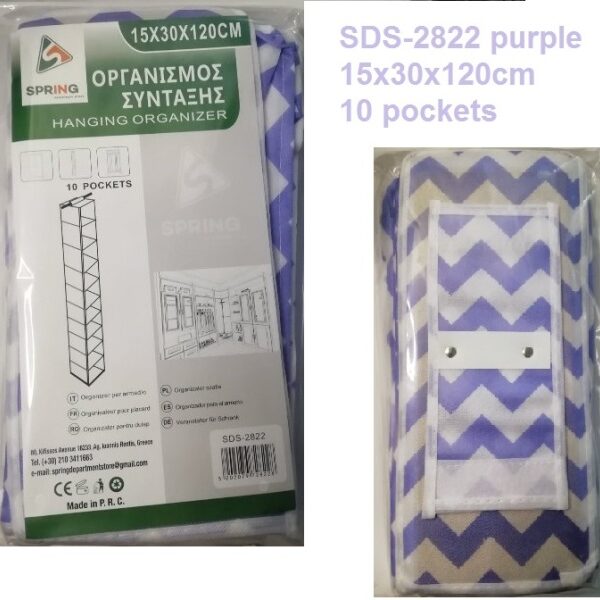 Υφασμάτινος κρεμαστός διοργανωτής ντουλάπας 10 ράφια 15x30x120cm μωβ SDS-2822 OEM