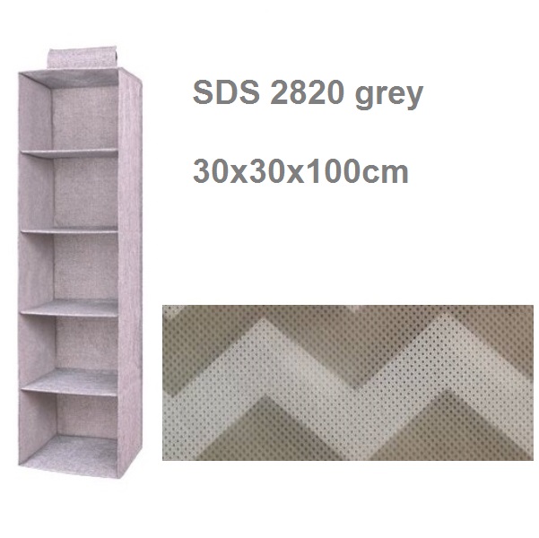 Υφασμάτινος κρεμαστός διοργανωτής ντουλάπας 5 ράφια 30x30x100cm γκρι SDS-2820 OEM