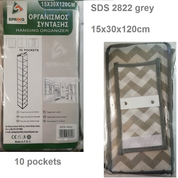 Υφασμάτινος κρεμαστός διοργανωτής ντουλάπας 10 ράφια 15x30x120cm γκρι SDS-2822 OEM