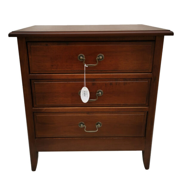 Κομοδίνο με 3 συρτάρια από μασίφ ξύλο σημύδας σε χρώμα καρυδί 42x34x65