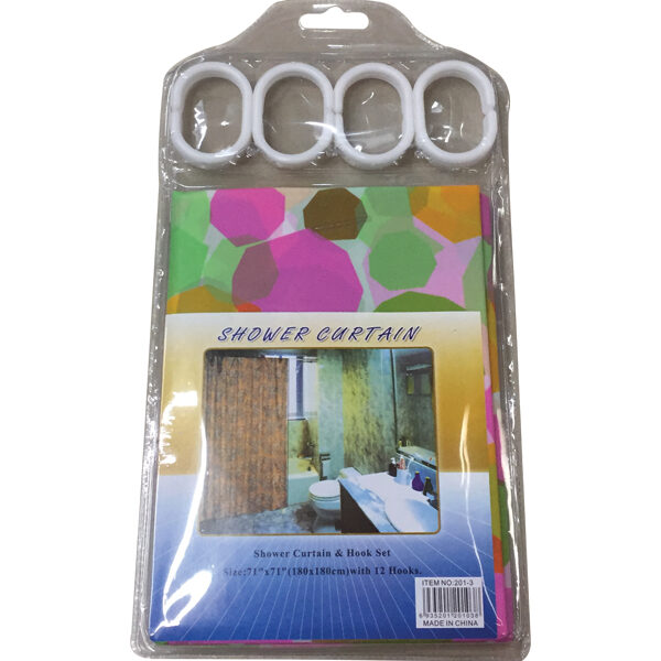Σετ πλαστική κουρτίνα μπάνιου 180x180cm με κρίκους [70701457]
