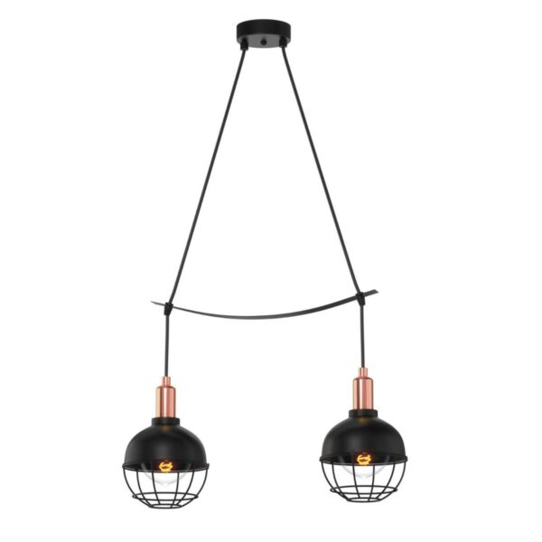 Φωτιστικό Κρεμαστό Ritim 3 Μαύρο Μεταλλικό με Σχοινί Τρίφωτο Ε27 35x35x65cm