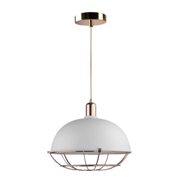 Φωτιστικό Κρεμαστό Μονόφωτο Μεταλλικό Λευκό με λεπτ. χαλκού E27 35X35X150cm
