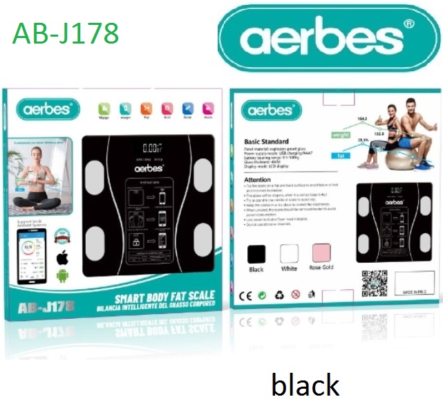 Έξυπνη ζυγαριά σωματικού λίπους Μαύρη AB-J178 Aerbes Aerbes