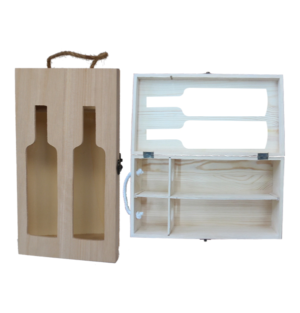 Αλουστράριστο ξύλινο κουτί για 2 φιάλες κρασί [20601232]