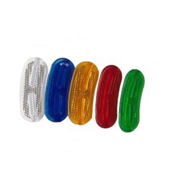 Η συσκευασία περιέχει 5 πολύχρωμα ανακλαστικά ποδηλάτου σε οβάλ σχήμα. Έχουν ειδικές εγκοπές ώστε να εφαρμόζουν ανάμεσα σε 2 ακτίνες της ρόδας. Μέγεθος : 6.5×2.5cm.