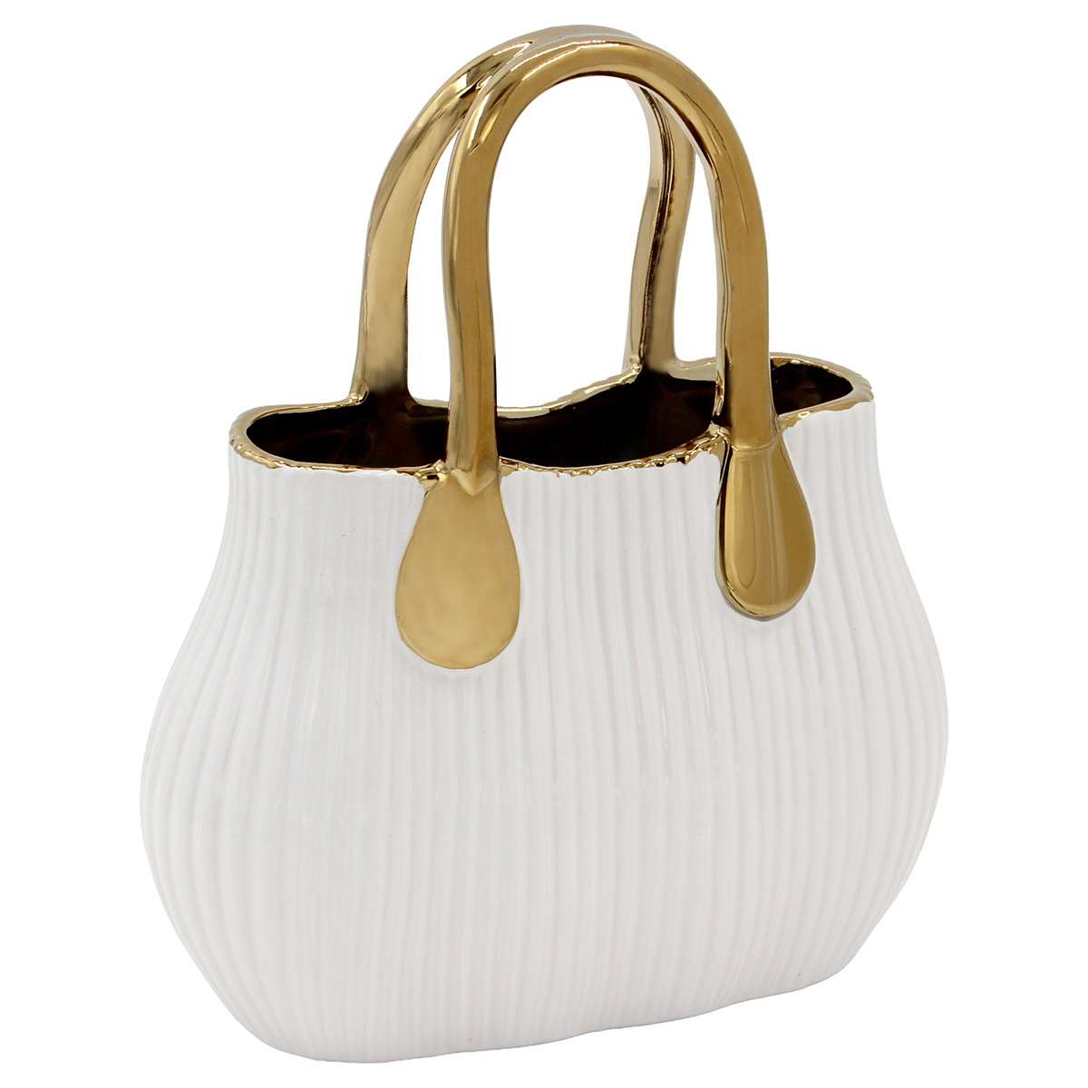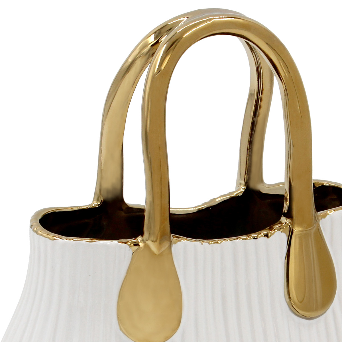 Ανθοδοχείο – Διακοσμητικό κεραμικό 21Χ10Χ25 εκ. Τσάντα Λευκό Χρυσό