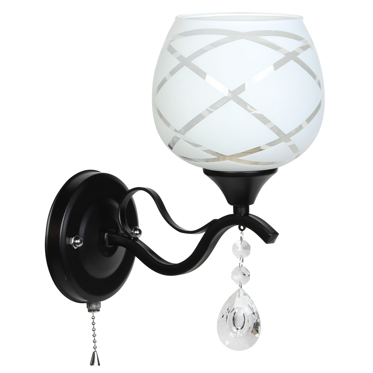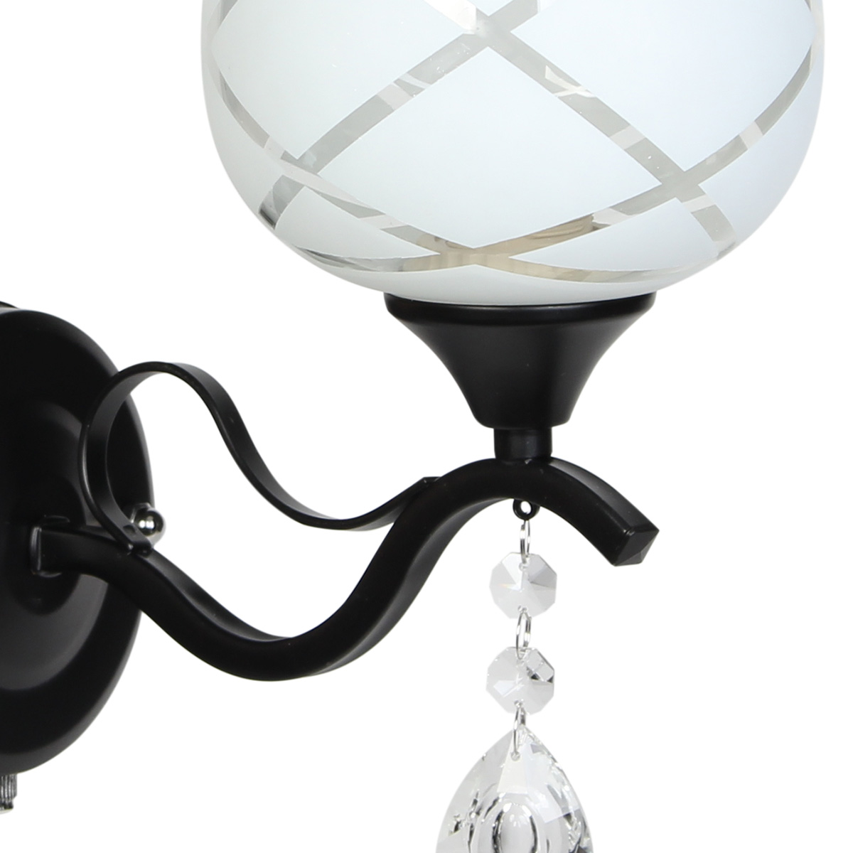 Απλίκα τοίχου Ε27 12Χ22Χ26 εκ. μαύρη με γυαλί και κρύσταλλο. Διαθέτει διακόπτη ON/OFF.
