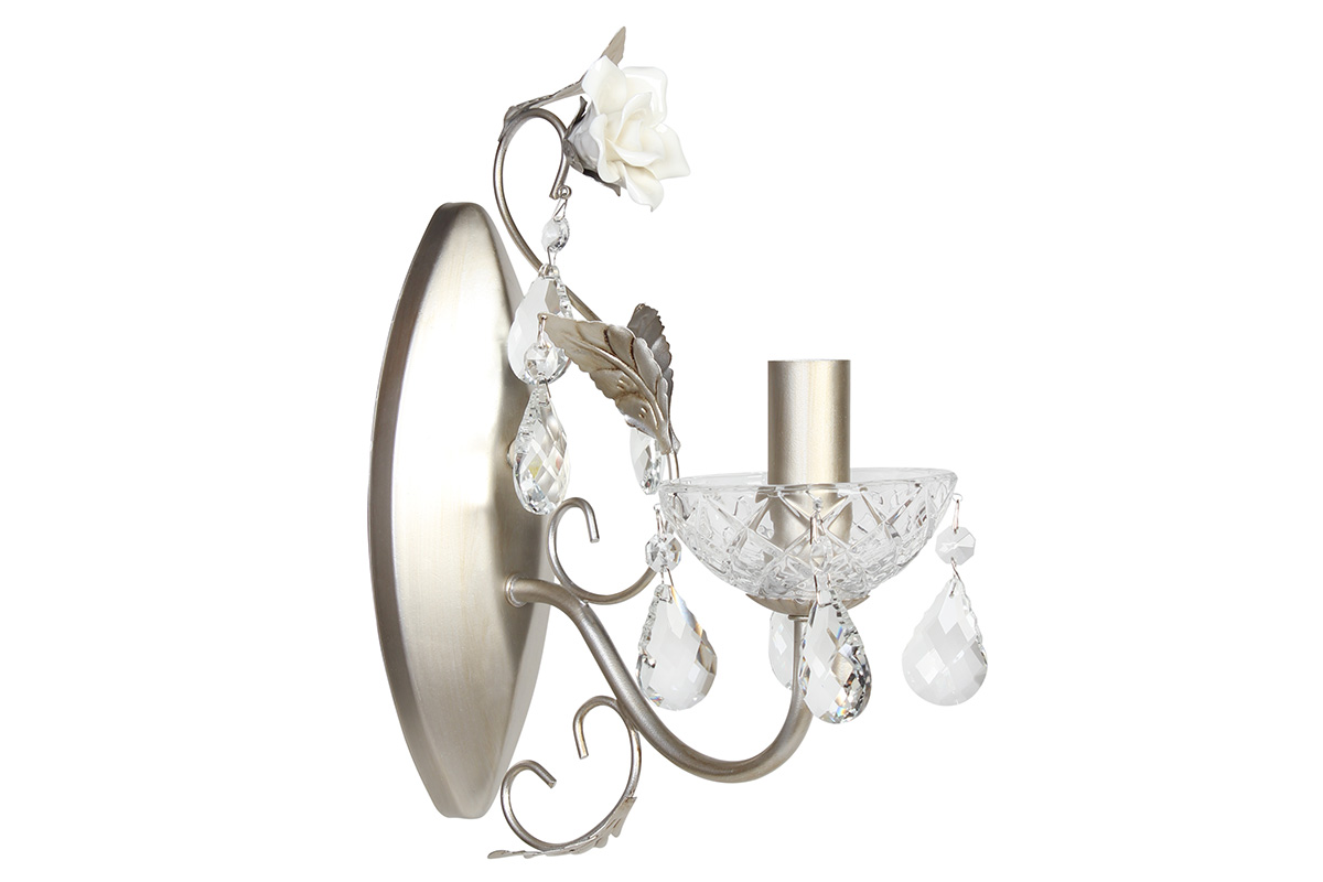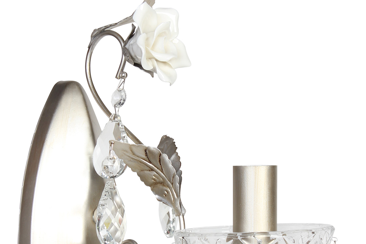 Απλίκα τοίχου μεταλλική Ε14 11Χ24Χ31 εκ. σαμπανί με κρύσταλλα και τριαντάφυλλα – KESKOR W0876/1