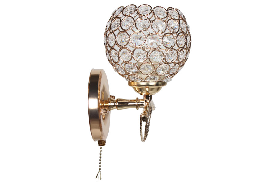 Απλίκα τοίχου μεταλλική Ε27 12Χ14Χ19 εκ. χρυσό με κρύσταλλα – KESKOR 9578/01GD