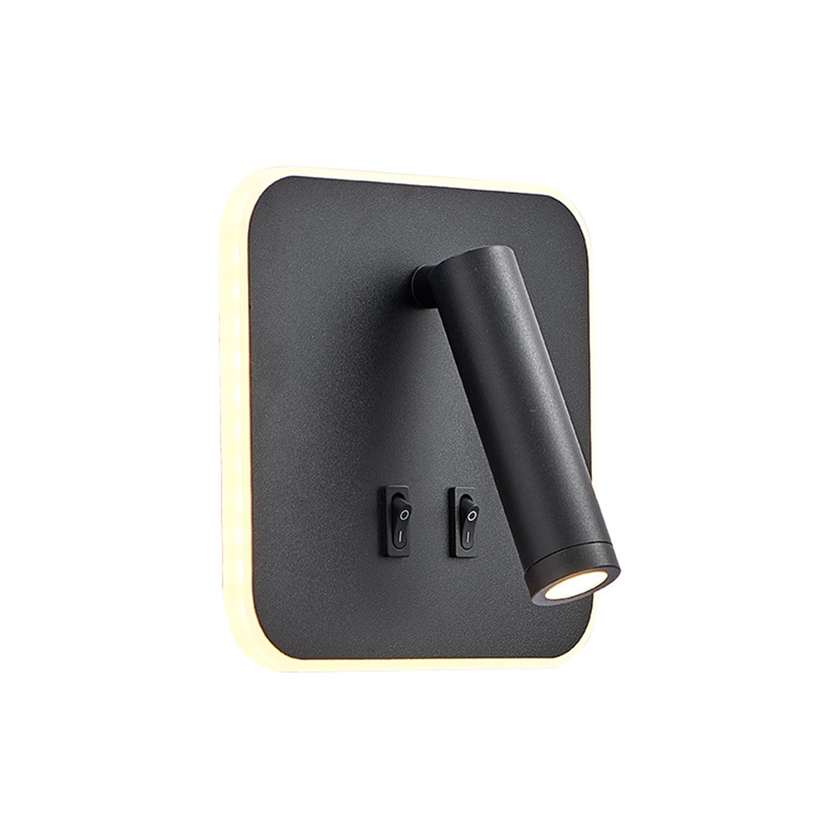 Απλίκα τοίχου – Σποτ LED 8W 14,5Χ8,5Χ14,5 εκ. Μαύρο με διπλό διακόπτη