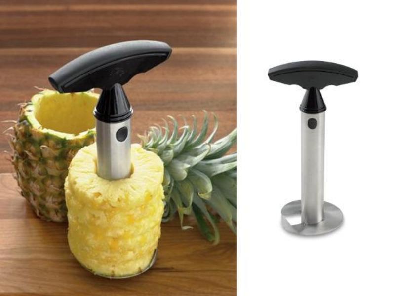 Τραβάτε έξω το εργαλείο με τον καθαρισμένο ανανά κι αφαιρείτε το επάνω μέρος του εργαλείου. Είναι έτοιμο!