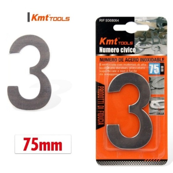 Ανοξείδωτο μεταλλικό νούμερο για οικιακή ή επαγγελματική χρήση. Εύκολη τοποθέτηση με αυτοκόλλητο στο πίσω μέρος. Ύψος στοιχείου : 7.5 cm.