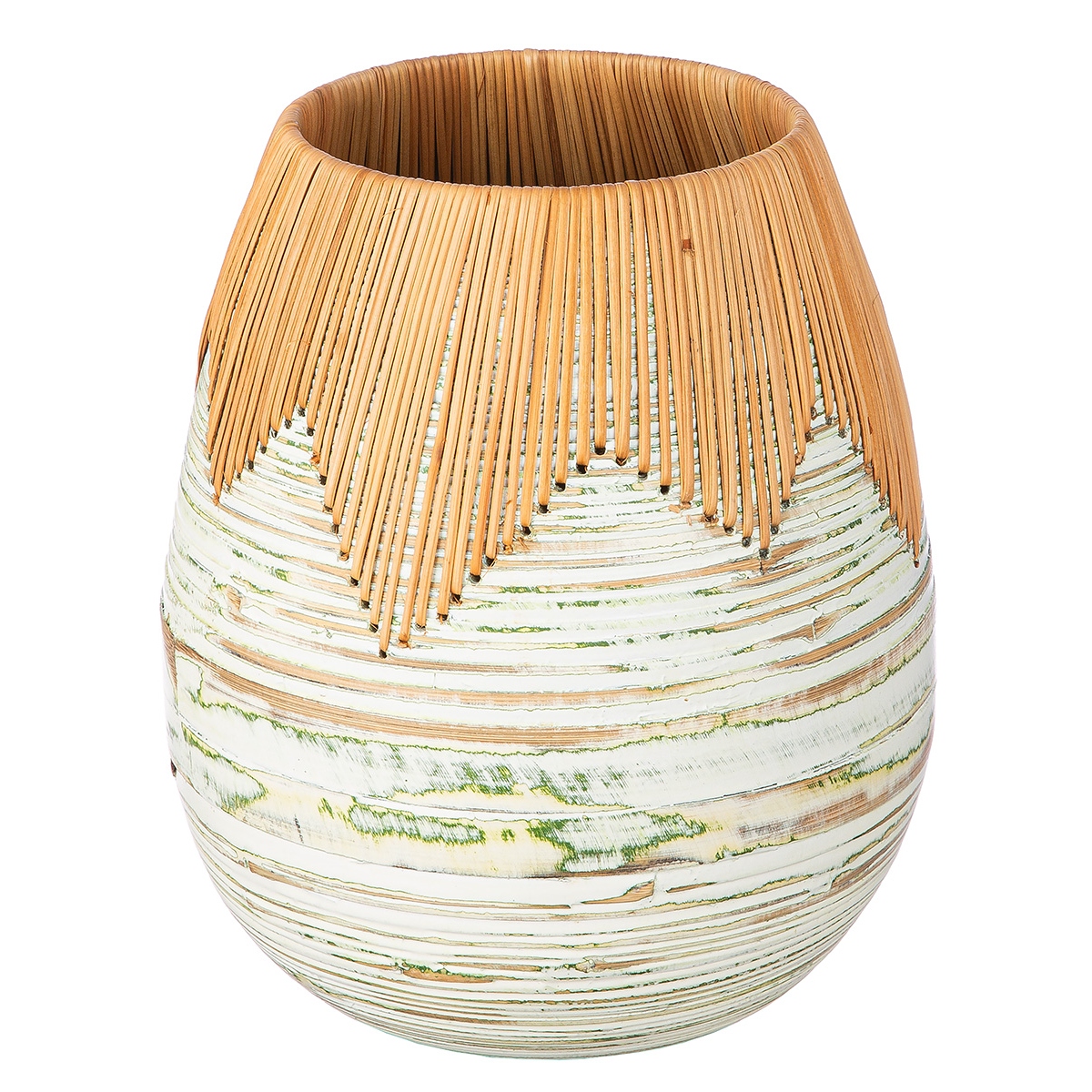 Βάζο Σφαιρικό ‘Fortaleza’ Μπαμπού/Ρατάν Εκρού/Πράσινο 35x30cm