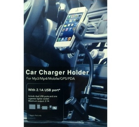 Βάση στήριξης κινητού για το αυτοκίνητο με 2 θύρες USB, ιδανική για τα περισσότερα κινητά, mp3 & mp4 players, PDA και GPS!