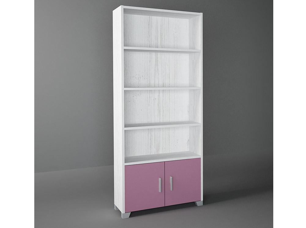 Βιβλιοθήκη σε λευκό ρουστίκ χρώμα απο μελαμίνη(πάχους 18mm) μοντέρνας σχεδίασης και υψηλής ποιότητας. Διαθέτει 4 αποθηκευτικούς χώρους και ένα ντουλάπι σε ροζ απόχρωση, για να οργανώσετε το παιδικό δωμάτιο και να δώσετε μία διαφορετική αίσθηση στο χώρο.