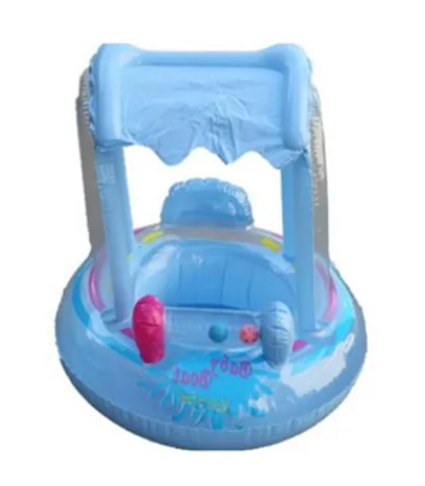 Βρεφικό σωσίβιο με κάθισμα και σκίαστρο UPF 50+, που προστατεύει το δέρμα του μωρού μακριά από τον ήλιο.