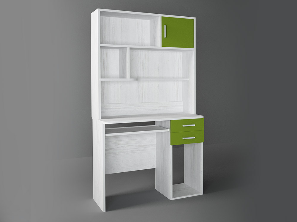 Γραφείο παιδικό με εταζέρα απο ενισχυμένη μελαμίνη άριστης ποιότητας σε χρώμα λευκό ρουστίκ-λαχανί. Το γραφείο διαθέτει θέση για μονάδα ηλεκτρονικού υπολογιστή καθώς και 2 συρτάρια. Η εταζέρα περιλαμβάνει 2 ράφια και ένα ντουλάπι. Μία ιδιαίτερα πρακτική και χρηστική επιλογή για να εξοικονομήσετε χώρο και να δημιουργήσετε ένα όμορφο και λειτουργικό περιβάλλον για το παιδί σας.