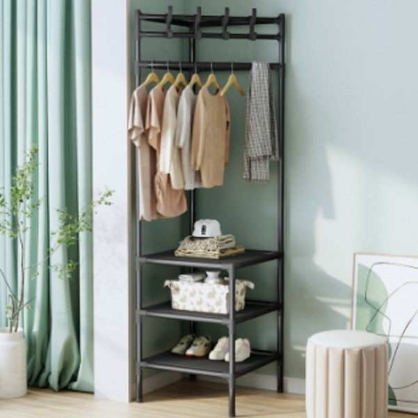 Πολυλειτουργική κρεμάστρα για την είσοδο που εξοικονομεί χώρο, συνδυάζοντας γάντζους για παλτό, σχάρες αποθήκευσης και 3 ράφια παπουτσιών.