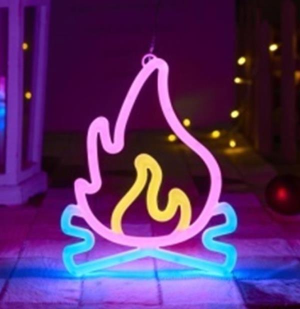 Φωτιστικό LED νέον σε σχήμα φωτιά στο τζάκι.