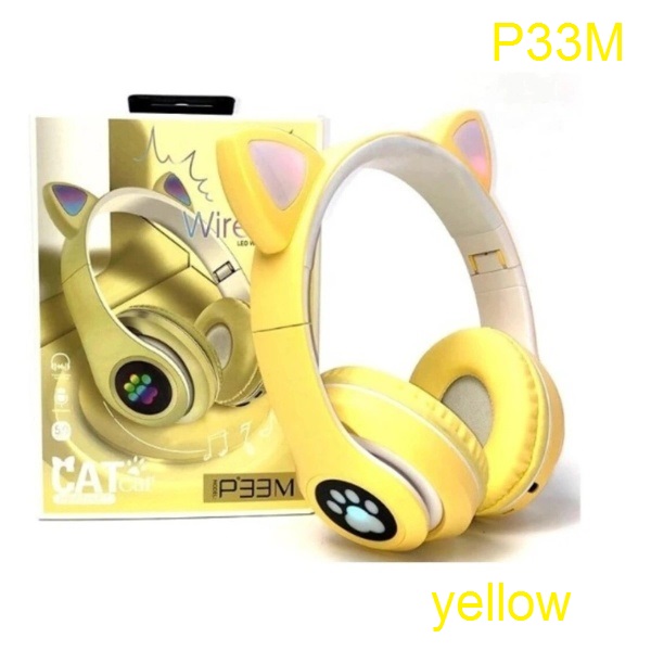 Επαναφορτιζόμενα ασύρματα ακουστικά για παιδιά με LED αυτιά γάτας κίτρινα OEM