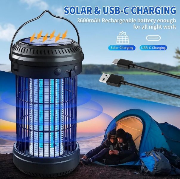 Επαναφορτιζόμενη ηλιακή λάμπα εξολόθρευσης κουνουπιών και ιπτάμενων εντόμων.