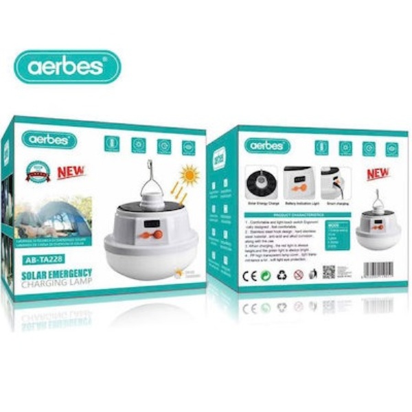 Επαναφορτιζόμενη ηλιακή λάμπα λευκή LED AB-TA228 Aerbes