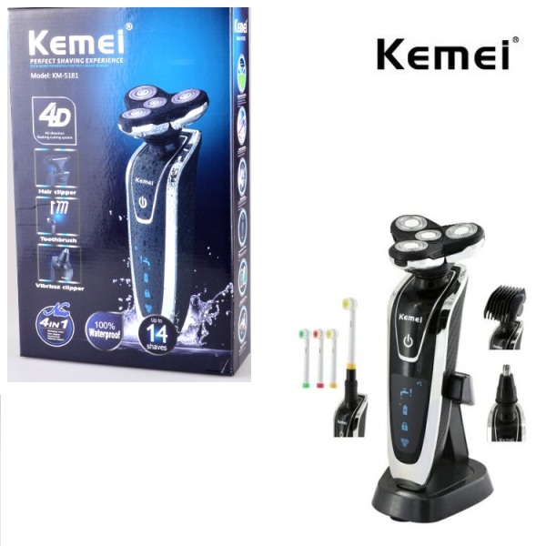 Επαναφορτιζόμενη ξυριστική μηχανή με τρίμερ και οδοντόβουρτσα KM-5181 KEMEI KEMEI