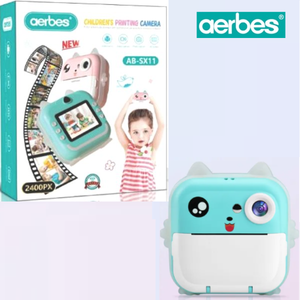 Επαναφορτιζόμενη παιδική ψηφιακή κάμερα στιγμιαίας εκτύπωσης θαλασσί AB-SX11 AERBES Aerbes