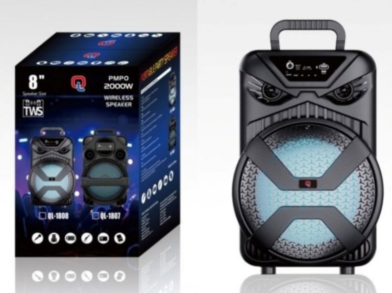 Επαναφορτιζόμενο, ασύρματο ηχείο Bluetooth 8" μαύρο 10W QL-1808 OEM