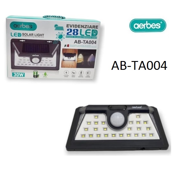 Επαναφορτιζόμενο ηλιακό φως τοίχου 28 LED με ανιχνευτή κίνησης 30W AB-TA004 aerbes Aerbes