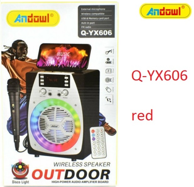 Επαναφορτιζόμενο ηχείο Bluetooth με μικρόφωνο και τηλεχειριστήριο κόκκινο Q-YX606 ANDOWL Andowl