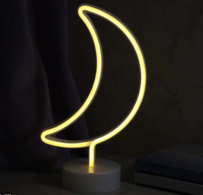 Επιτραπέζιο διακοσμητικό φως led νέον φεγγάρι με μακρύ καλώδιο usb. Διαστάσεις (μαζί με τη βάση): 32 x 19 cm