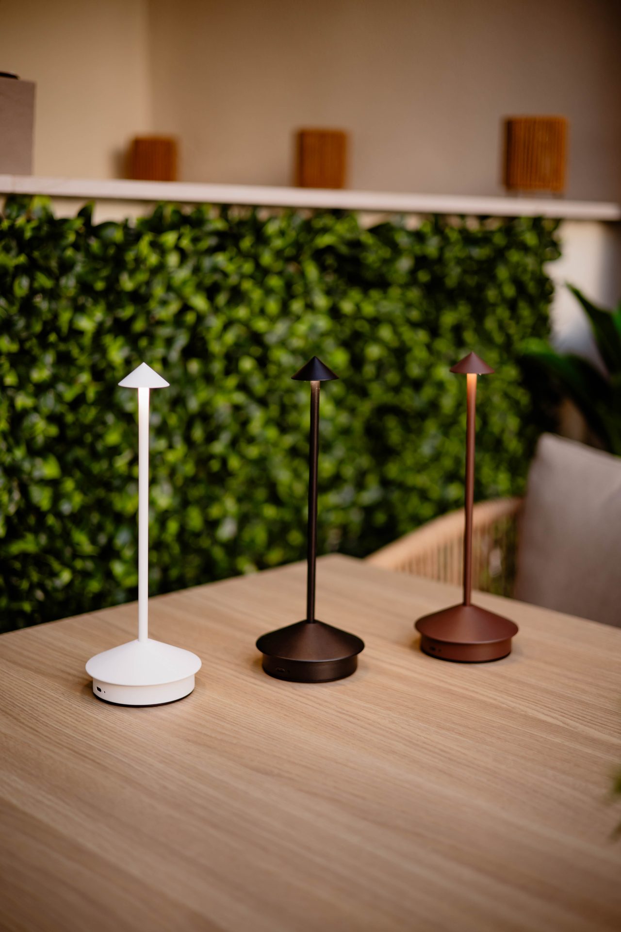 Επιτραπέζιο φωτιστικό σε λευκό χρώμα.
