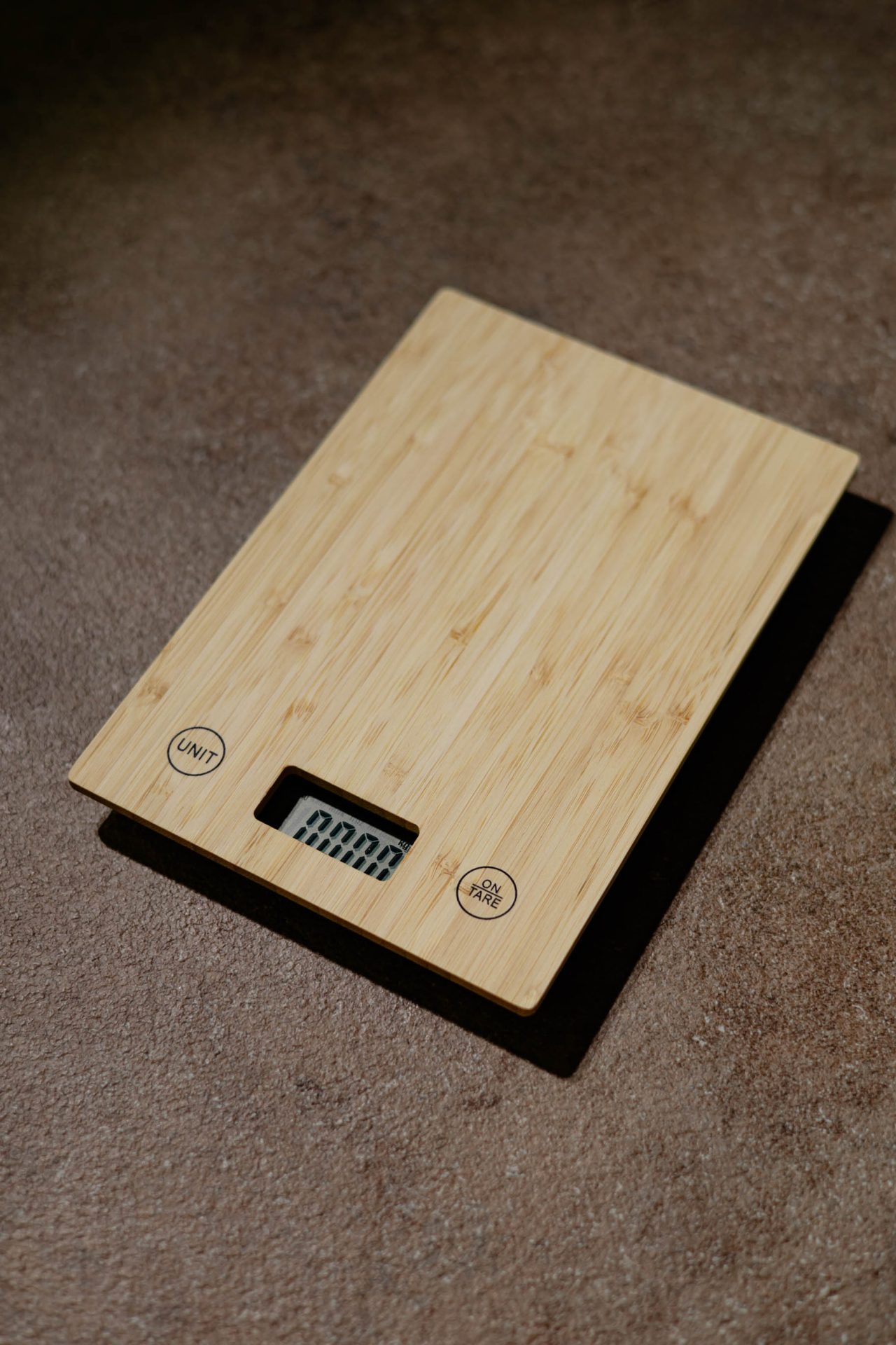 Ζυγαριά κουζίνας με μπαμπού επιφάνεια και ψηφιακή οθόνη ένδειξης LCD.
