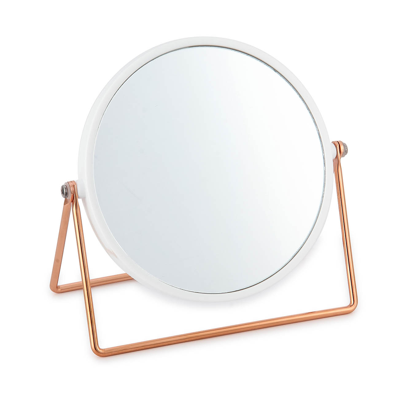Καθρέφτης μπάνιου κατασκευασμένος από γυαλί και μέταλλο υψηλής ποιότητας και ανθεκτικότητας στον χρόνο σε χρώμα λευκό με ροζ χρυσό. Ιδανική και κομψή επιλογή για τον προσωπικό ή τον επαγγελματικό σας χώρο καθώς μπορεί εύκολα να εναρμονιστεί με την υπάρχουσα διακόσμηση.