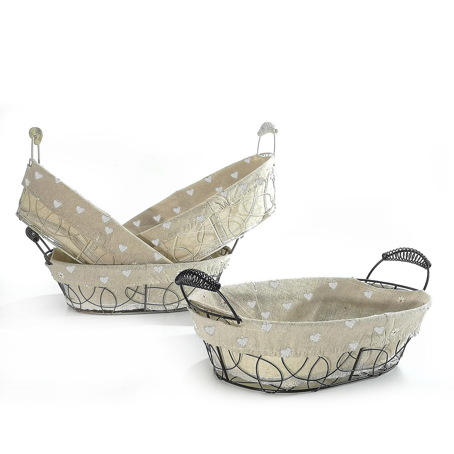 Καλάθι οβάλ με υφασμάτινη μπεζ επένδυση και λαβές σε 4 αποχρώσεις