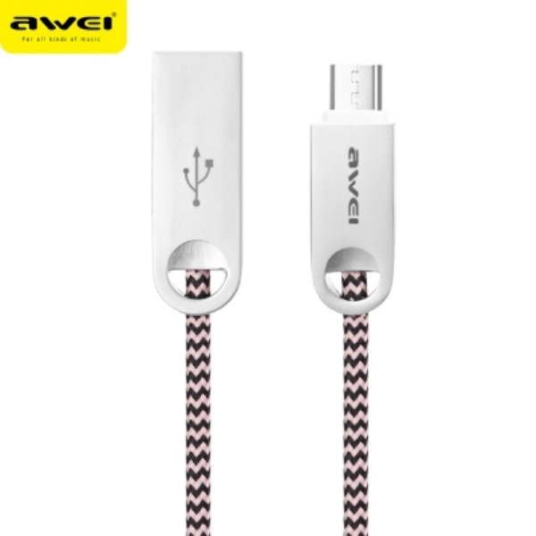 Καλώδιο γρήγορης φόρτισης και μεταφοράς δεδομένων υψηλής ποιότητας AWEI μήκους 1 μέτρου με υφασμάτινη επένδυση. Κατάλληλο για όλα τα τηλέφωνα και συσκευές android. USB σε micro usb. Μήκος 1m.