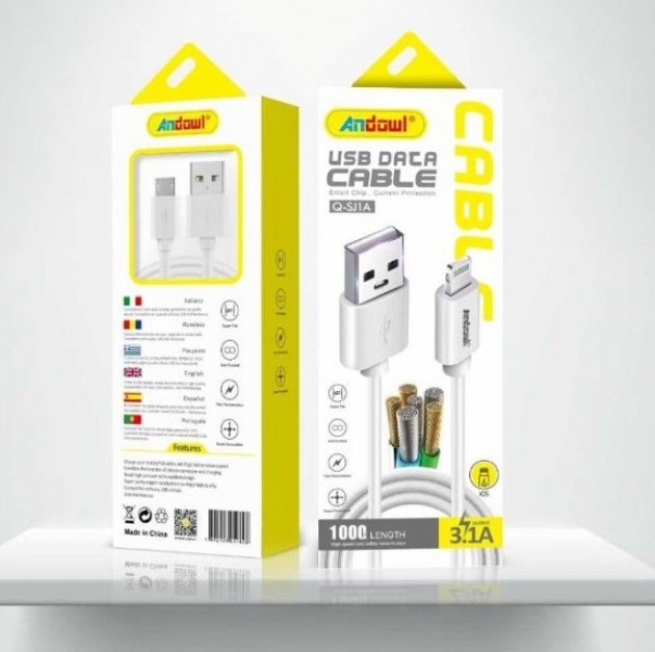 Καλώδιο δεδομένων USB Lightning 1μέτρο λευκό Q-SJ1A ANDOWL Andowl