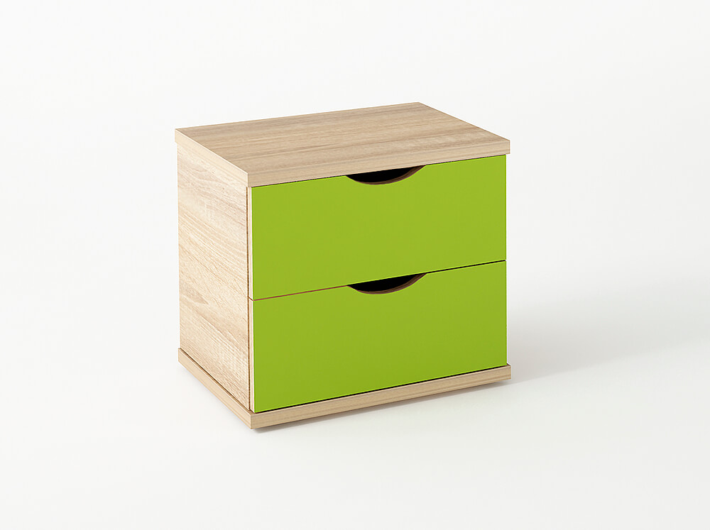 Κομοδίνο από ενισχυμένο σκελετό μελαμίνης άριστης ποιότητας σε χρώμα δρυς-λαχανί. Διαθέτει 2 συρτάρια με μηχανισμό φρένου, κατάλληλο για να πλαισιώσετε το παιδικό ή εφηβικό δωμάτιο συνδυάζοντάς το και με τα υπόλοιπα προϊόντα της σειράς και να δημιουργήσετε ένα όμορφο και λειτουργικό περιβάλλον για το παιδί σας.