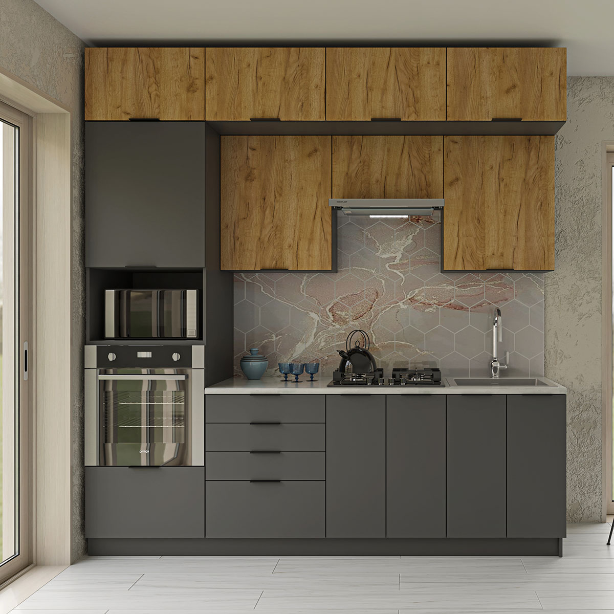 Κουζίνα Denis Craft, Σετ Έντεκα Τεμαχίων, Ευρωπαϊκής Κατασκευής, εξαιρετικής ποιότητας και υψηλής αντοχής, σε απόχρωση Γραφίτη-Χρυσό Δρυς.