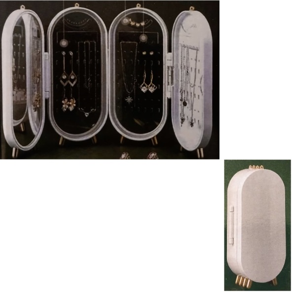 Κομψό και βολικό κουτί αποθήκευσης για τα τιμαλφή σας. Με αρκετό χώρο για σκουλαρίκια, κολιέ και άλλα κοσμήματα. Ο ενσωματωμένος καθρέφτης του σας βοηθά να φορέσετε ό,τι θέλετε. Μέγεθος: ανοιχτό : 23x40x2cm, διπλωμένο: 23x11x6,5cm.