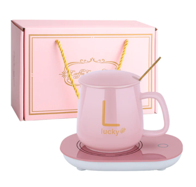 Κουτί δώρου ηλεκτρικό αυτόματο θερμοστατικό σουβέρ usb με κούπα και κουτάλι, ροζ OEM