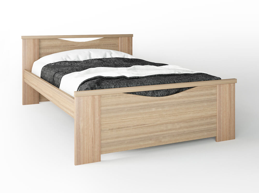 Κρεβάτι ημίδιπλο από ενισχυμένο σκελετό μελαμίνης υψηλής ποιότητας σε χρώμα δρυς . Μία μοντέρνα επιλογή κατάλληλη για οικιακή αλλά και επαγγελματική χρήση (π.χ ξενοδοχεία).