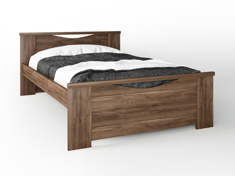 Κρεβάτι ημίδιπλο από ενισχυμένο σκελετό μελαμίνης υψηλής ποιότητας, σε χρώμα καρυδί. Μία μοντέρνα επιλογή κατάλληλη για οικιακή αλλά και επαγγελματική χρήση (π.χ ξενοδοχεία).