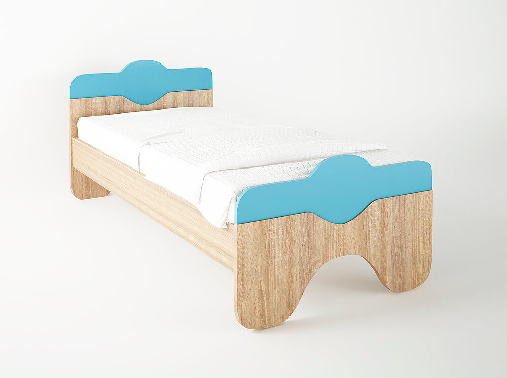 Κρεβάτι παιδικό ημίδιπλο απο ενισχυμένο σκελετό μελαμίνης(πάχους 18mm) υψηλής ποιότητας σε χρώμα δρυς-σιέλ. Διαθέτει αντιχαρακτική επιφάνεια για αντοχή στις γρατζουνιές και στρογγυλεμένες γωνίες για αποφυγή ατυχημάτων. Ένα μοντέρνο έπιπλο για το παιδικό δωμάτιο.