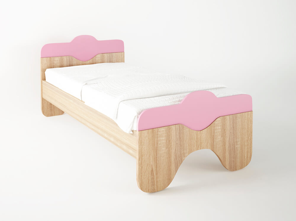 Κρεβάτι παιδικό μονό απο ενισχυμένο σκελετό μελαμίνης(πάχους 18mm) υψηλής ποιότητας σε χρώμα δρυς-ροζ. Διαθέτει αντιχαρακτική επιφάνεια για αντοχή στις γρατζουνιές και στρογγυλεμένες γωνίες για αποφυγή ατυχημάτων. Ένα μοντέρνο έπιπλο για το παιδικό δωμάτιο.