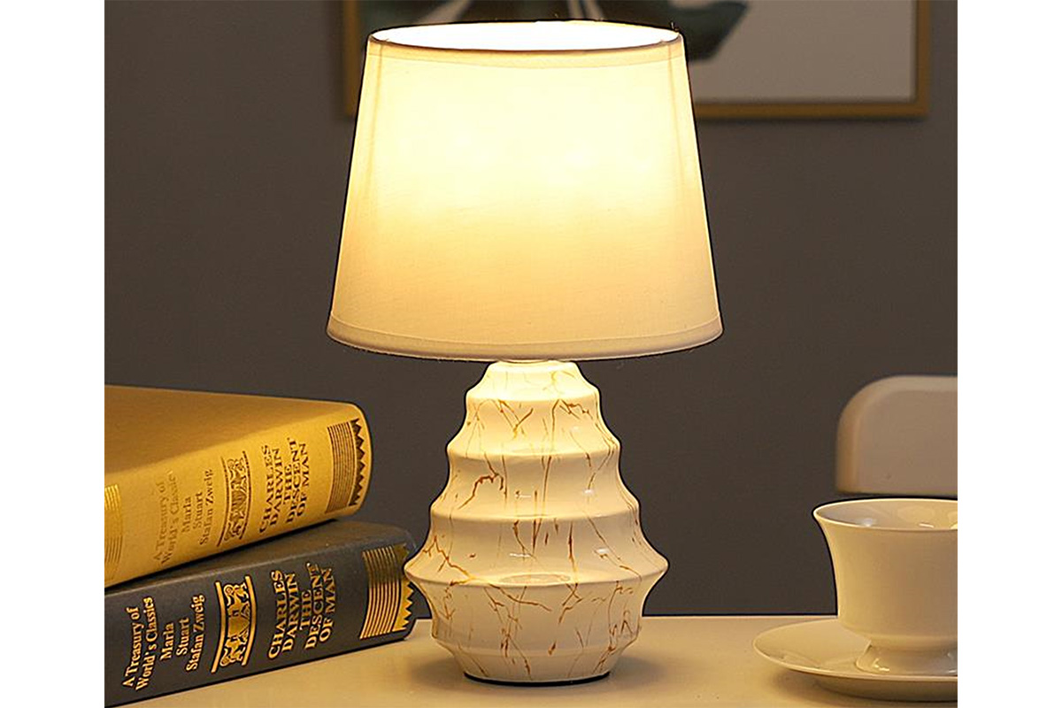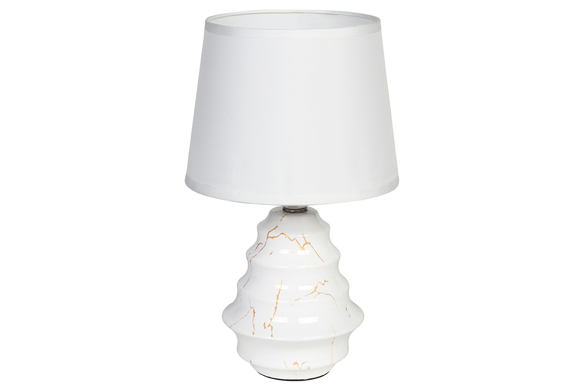 Λάμπα κεραμική Ε27 Φ17,5Χ28 εκ. Λευκή χρυσή με καπέλο.