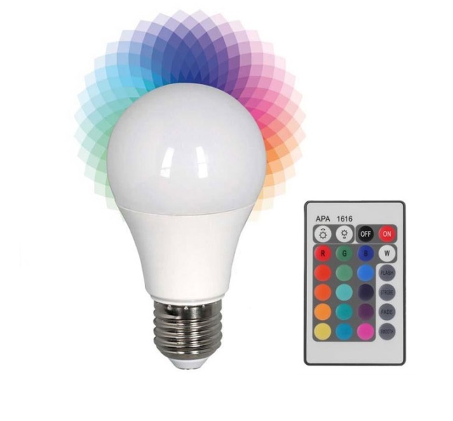 Η συσκευασία περιλαμβάνει 1 led λάμπα 5w και 1 τηλεχειριστήριο.