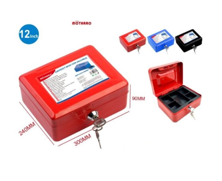 Μεταλλικό κουτί ταμείου με κλειδαριά 300x240x90mm με εργονομική λαβή και ξεχωριστό χώρο για νομίσματα.